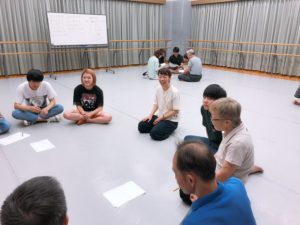 徹底的に身体トレーニングやストレッチを行う日もあれば、演技メソッド(手法)の勉強会をしたり、参加者の興味のあることをみんなで試してみたり、台本をつかって作品の試作をすることもあります。